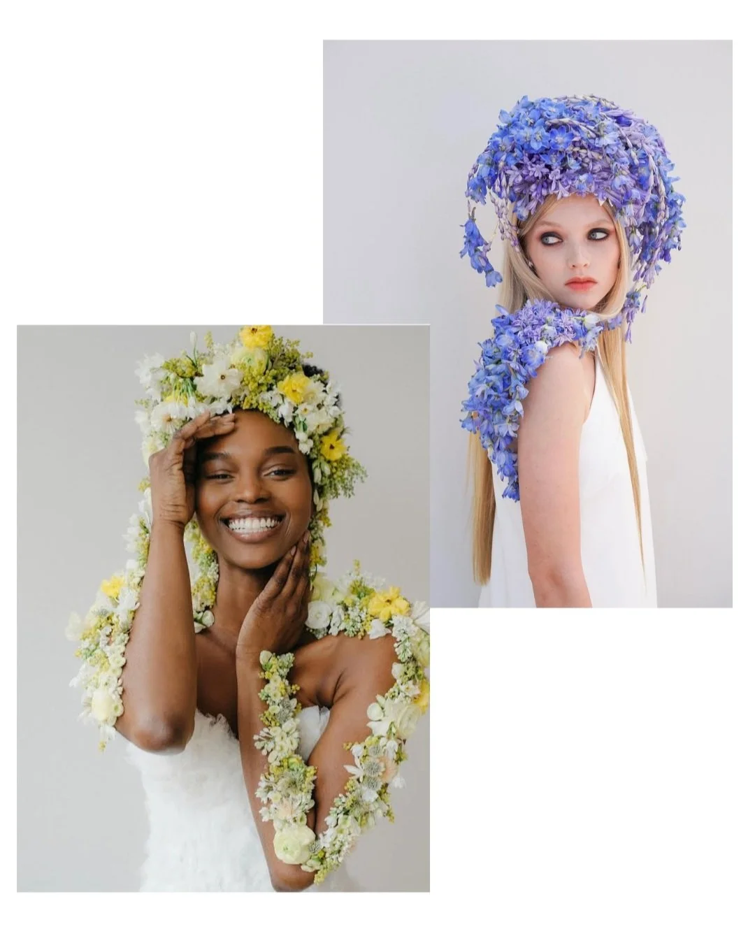 I recently had the opportunity to spend a day in the studio with Susan McLeary, a florist known for her innovative wearable pieces. Can you believe how amazing these are? She also did the floral wearables for my wedding (pictured above).