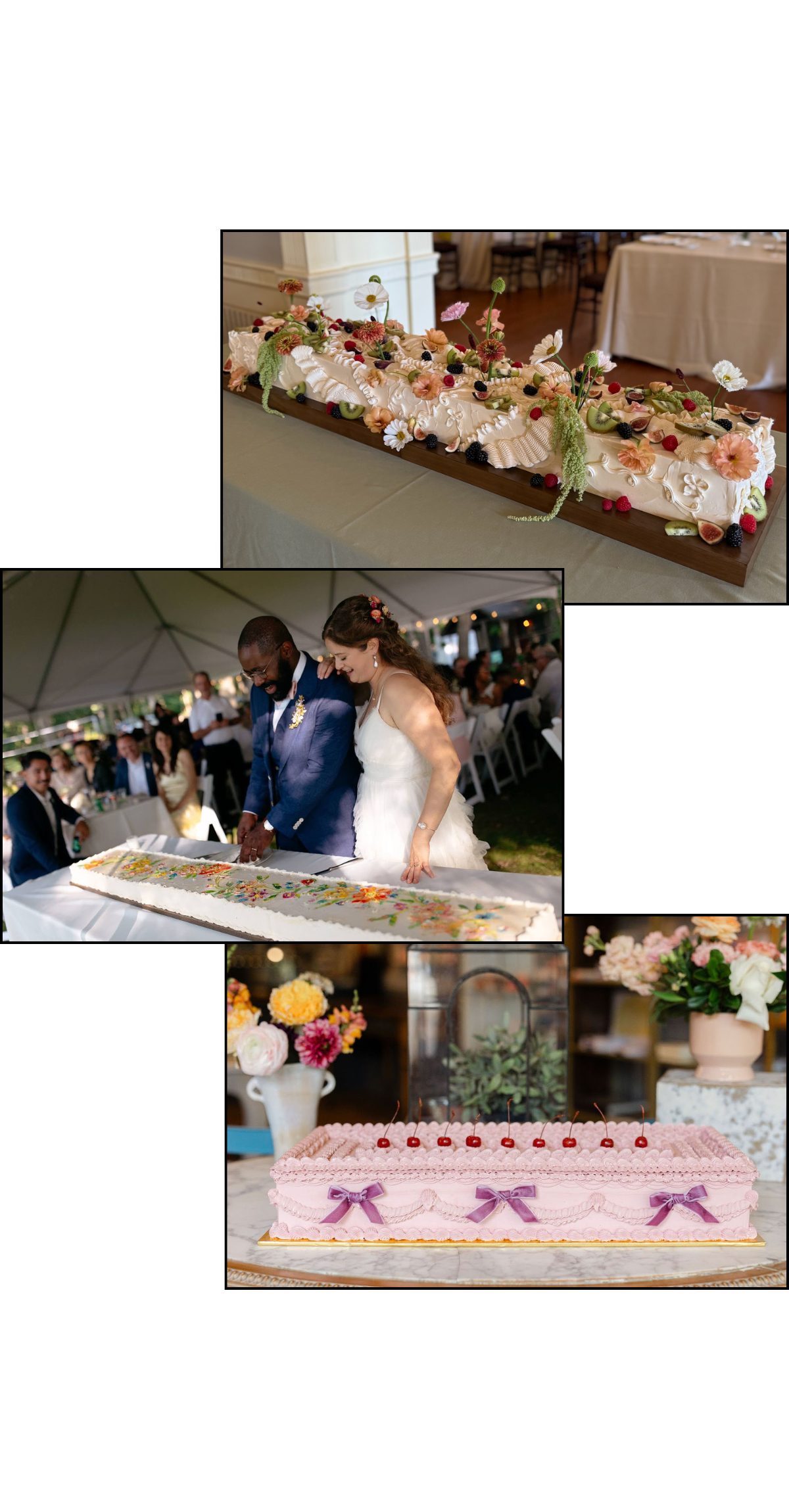 Three unique styles of long, table runner cakes designed and baked by Sweet Heather Anne.