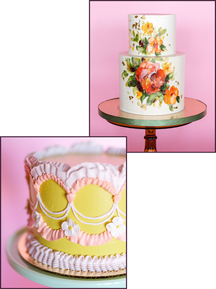 This year, we've been focused on narrowing the gap between what’s available in our online shop and our bespoke creations that require a $1000 minimum. Noticing a trend toward smaller cakes, we added more two-tier options and sheet cakes. We also introduced larger single-tier cakes and our take on the popular Lambeth heart cake, which have been met with great enthusiasm from our clients.