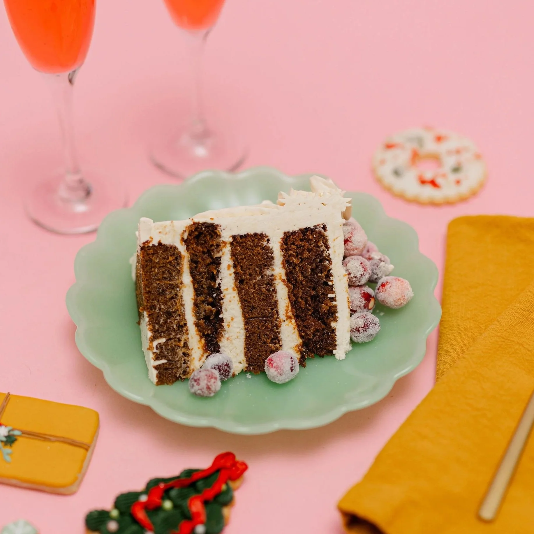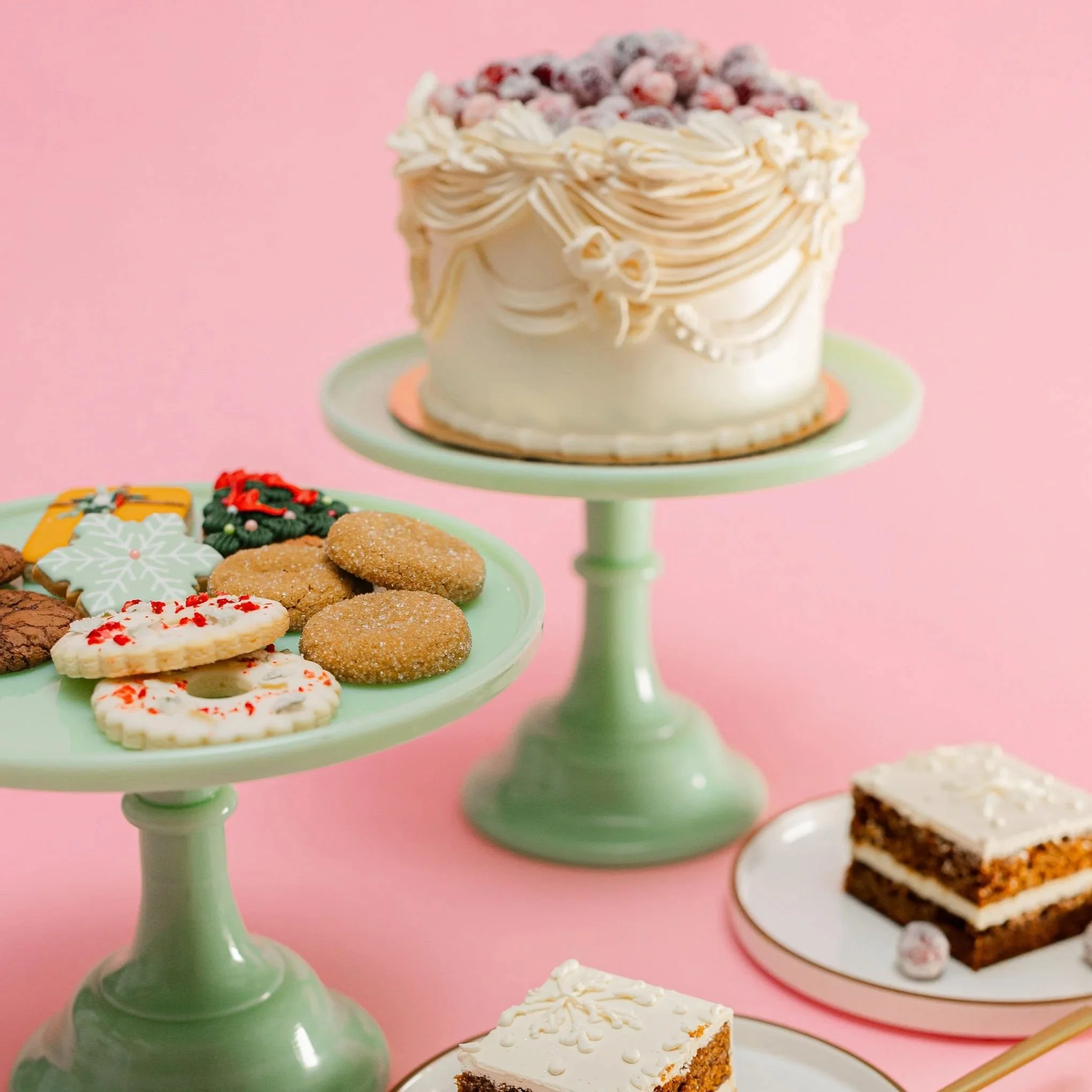 A beautiful mixed dozen featuring our Holiday Sugar Cookies with Maple Royal Icing, Lemon Shortbread Wreaths, Salted Chocolate Brownie Cookies and our NEW Molasses Chai Spice Cookies.
